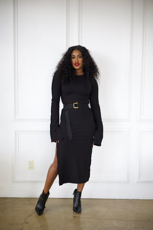 Onyx Side Slit Midi Dress