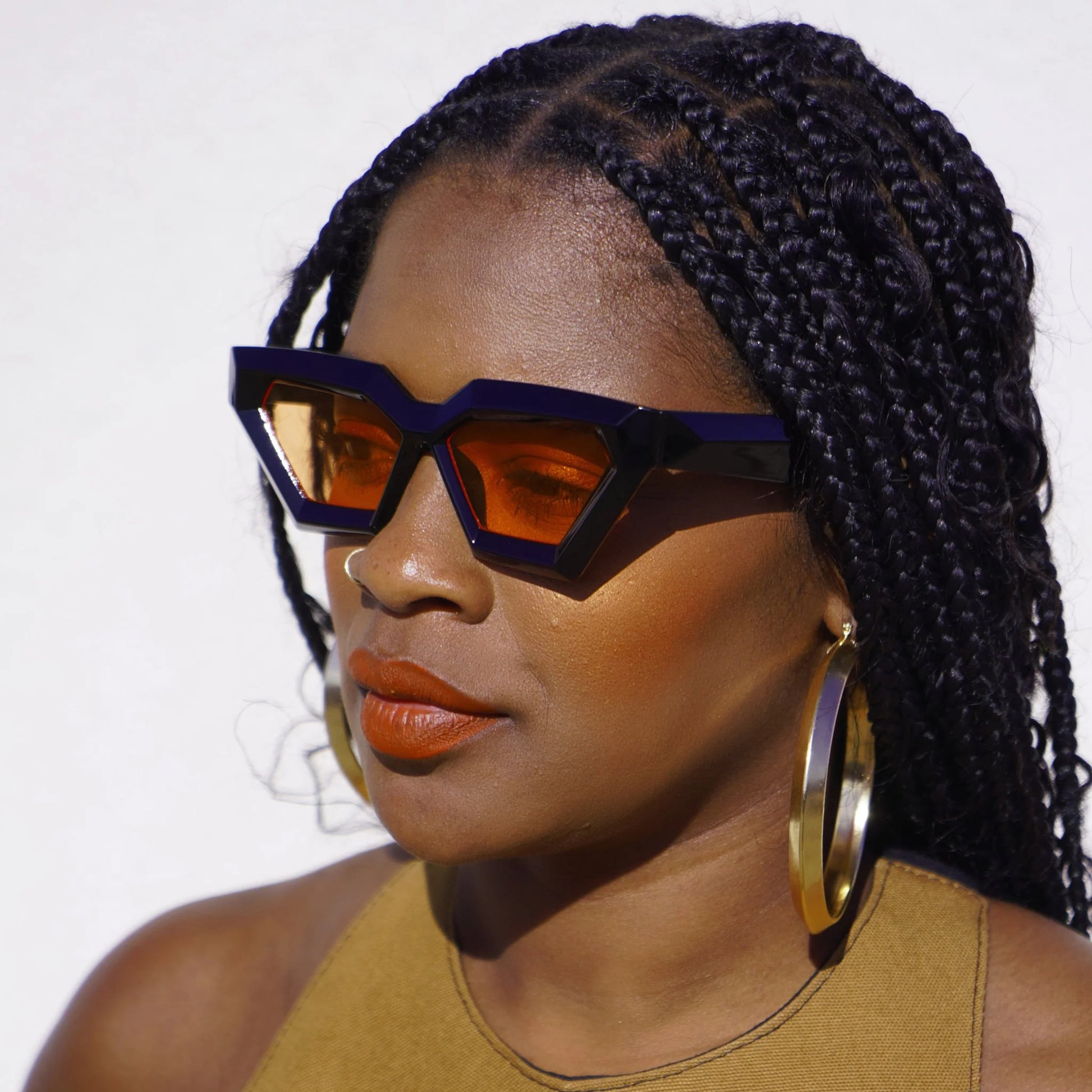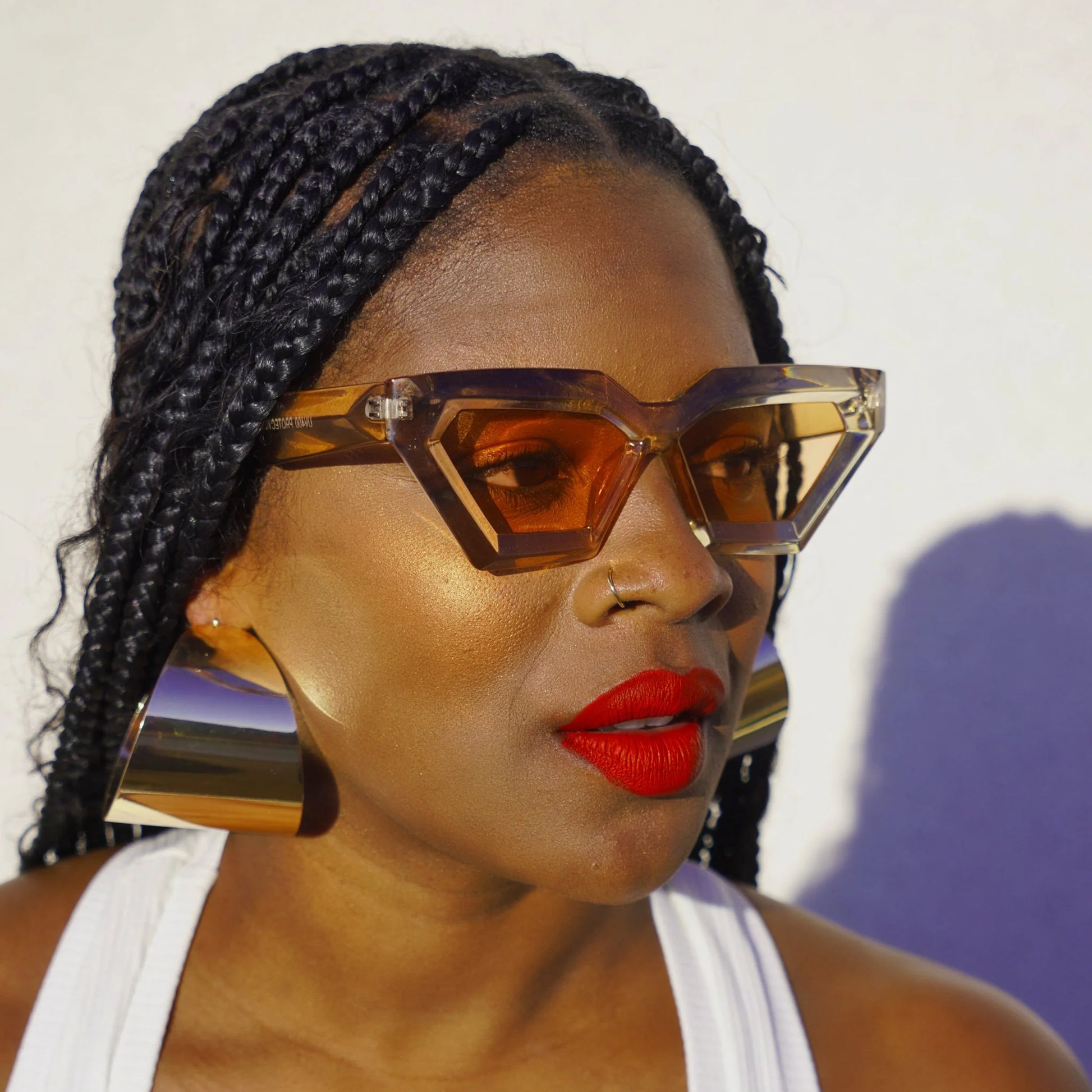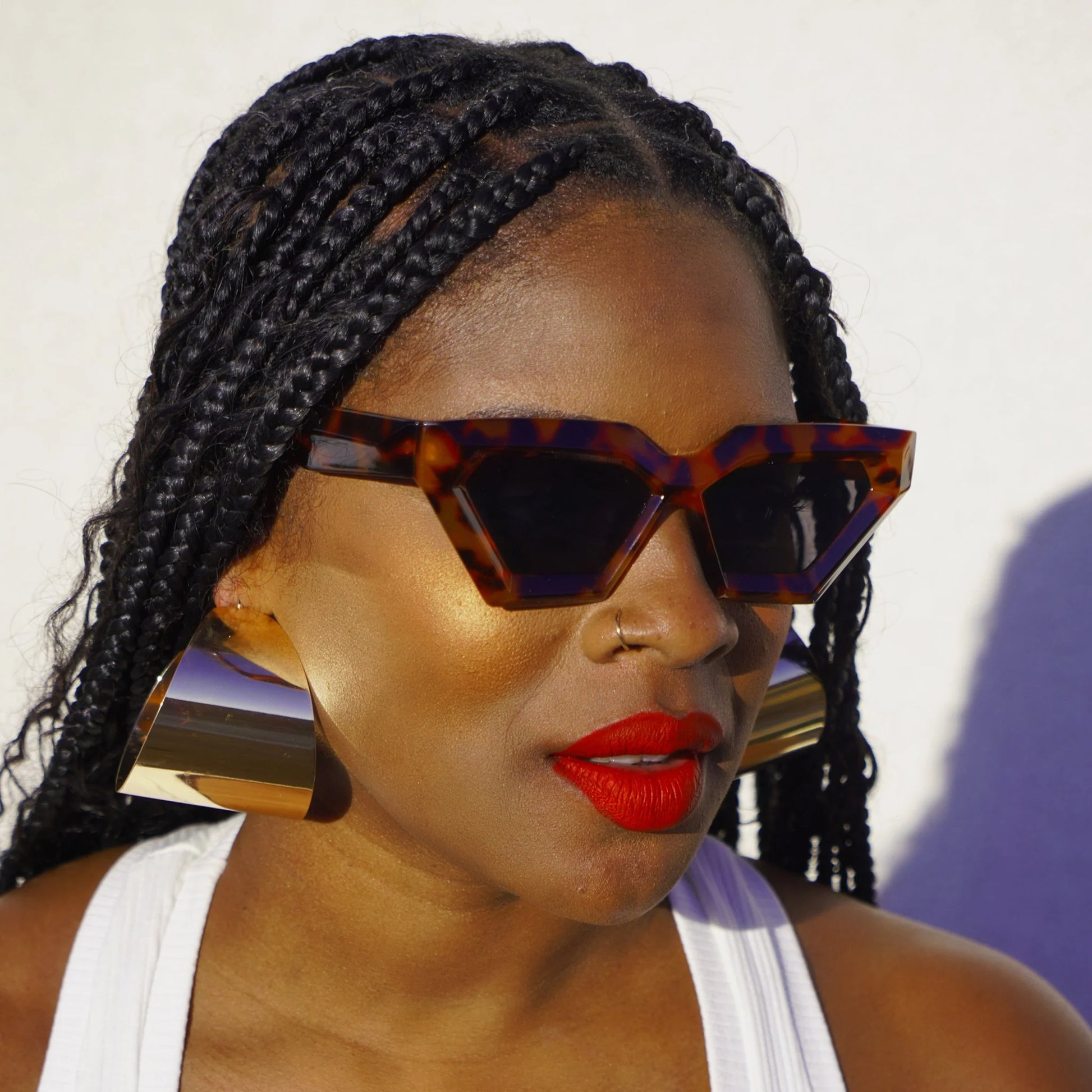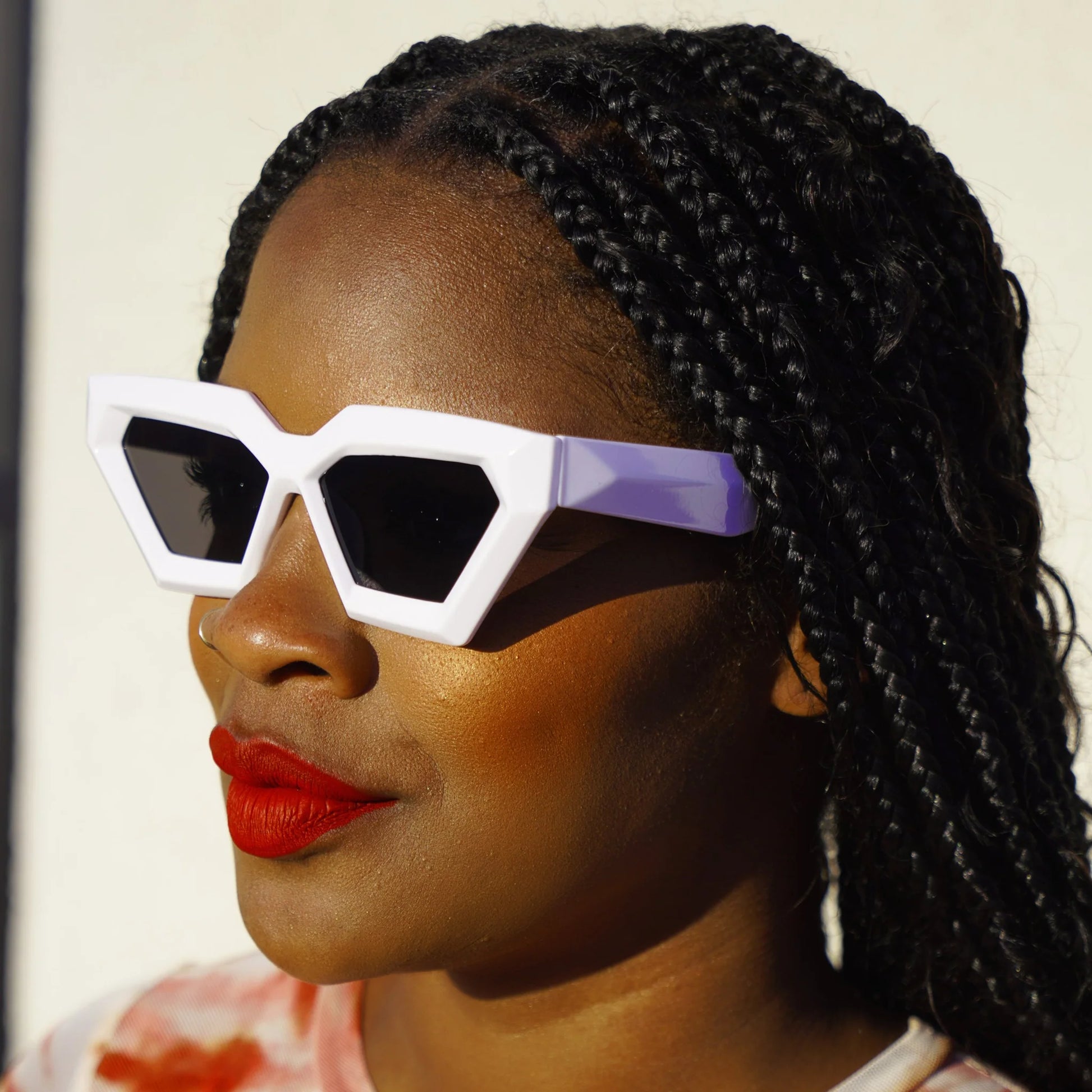 Top off all of your spring and summer looks with these edgy yet cool pair of Gobi Geometric Sunglasses. They come in five bold colors: white, black, tortoise, black and sunset, desert sand and sunrise that pair perfectly with the pieces of the Desert Oasis Collection.