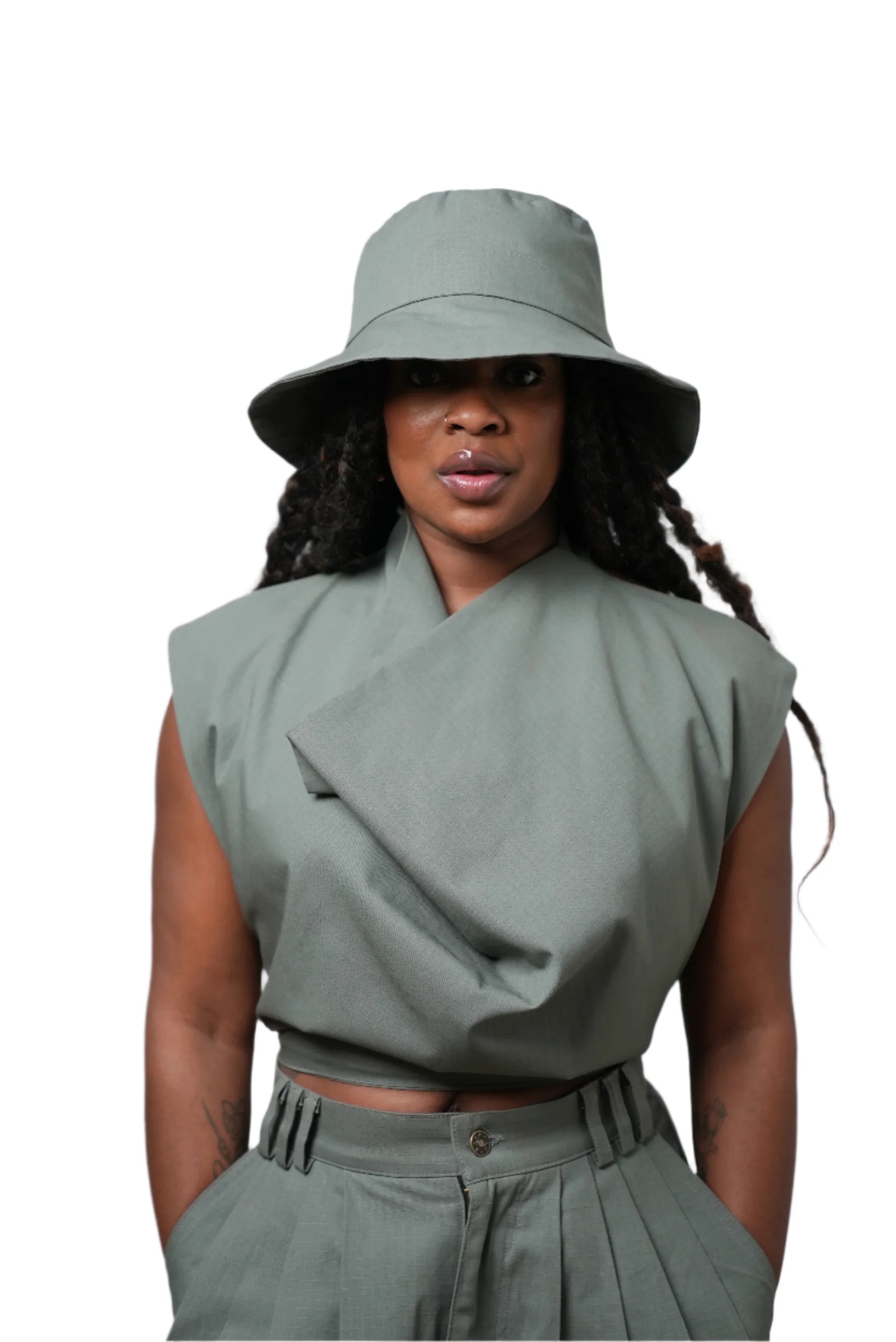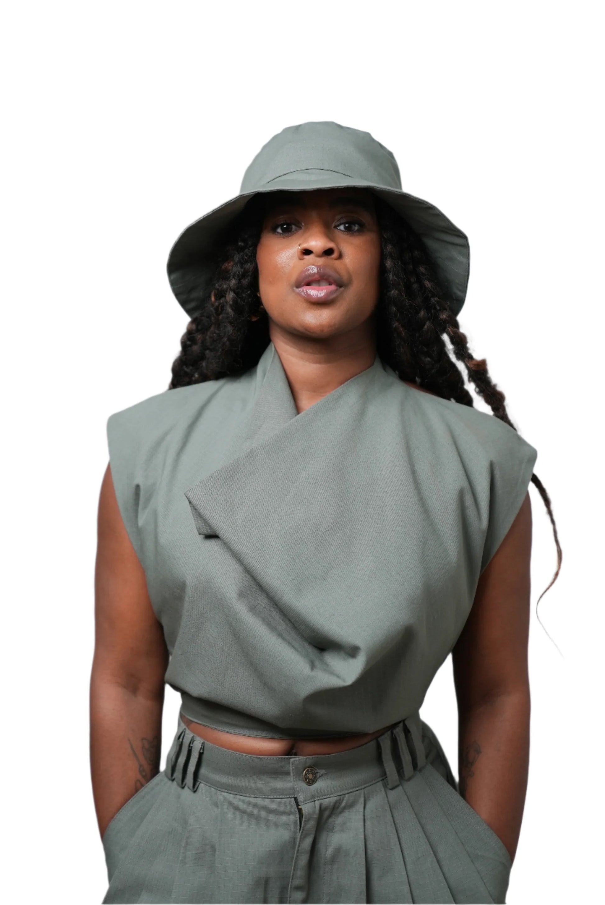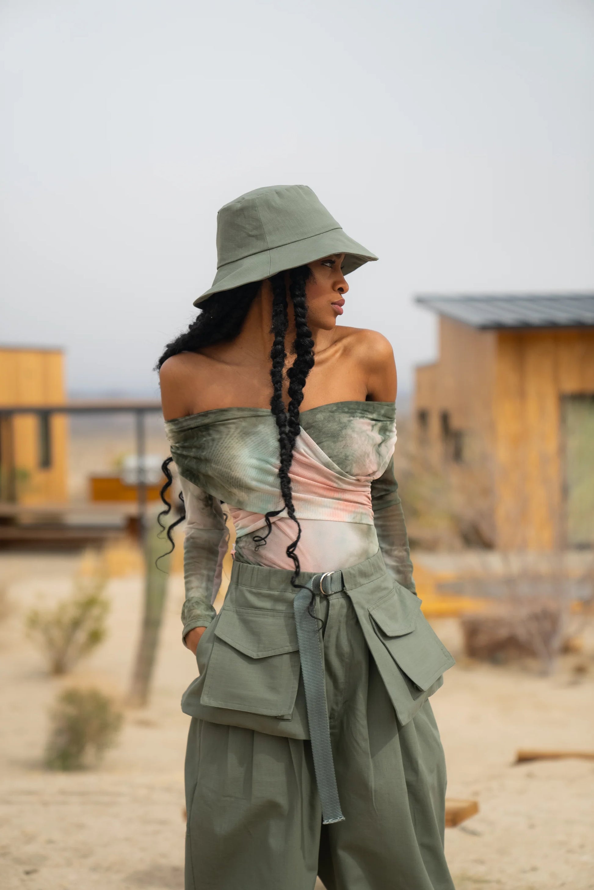 The Venus Bucket Hat is the perfect accessory to elevate your look. From our No Man's Land collection, this stylish hat is crafted from cotton-twill blend in a soft sage green and features an elongated brim for a refined touch. Demure yet chic, the Venus comes in two sizes—Small or Large—for the perfect fit. Pair it with the Viking Belt for a coordinated, sage green look that’s both polished and on-trend.