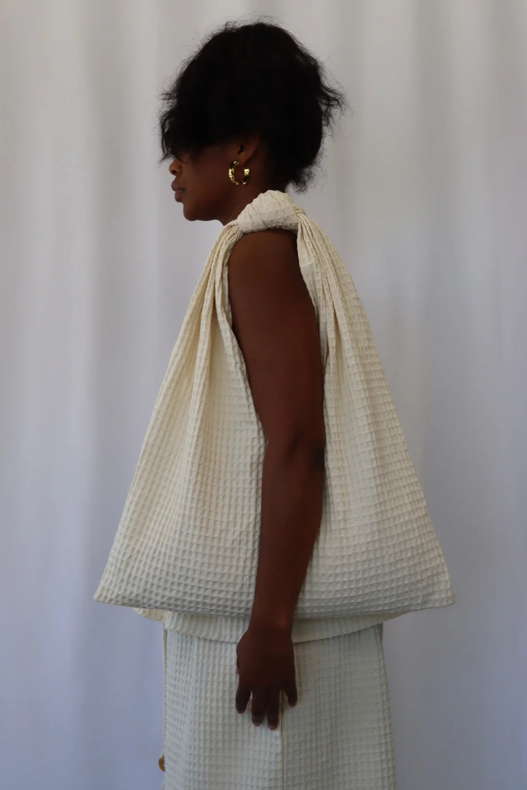 Elevate your everyday carry with the Waverly Bag — a minimalist essential with thoughtful detail. Crafted in a textured cream fabric, this tote brings a soft, sculptural feel to your look while staying effortlessly lightweight.